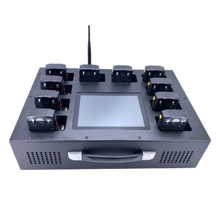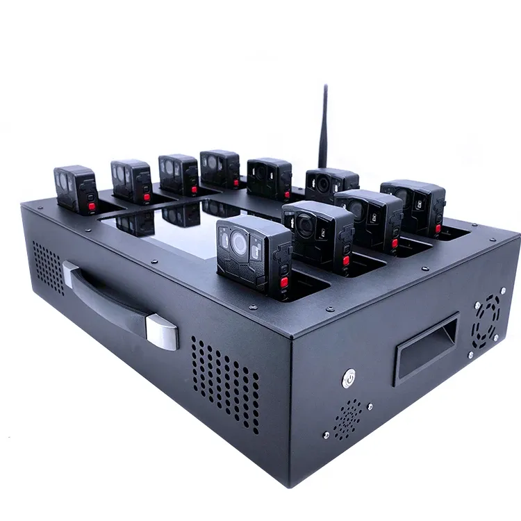 Body worn camera docking station is the latest charging and data uploading device, which can connect up to 10pcs cameras, via USB3.0 port, compatible with the most of body cameras in the market.